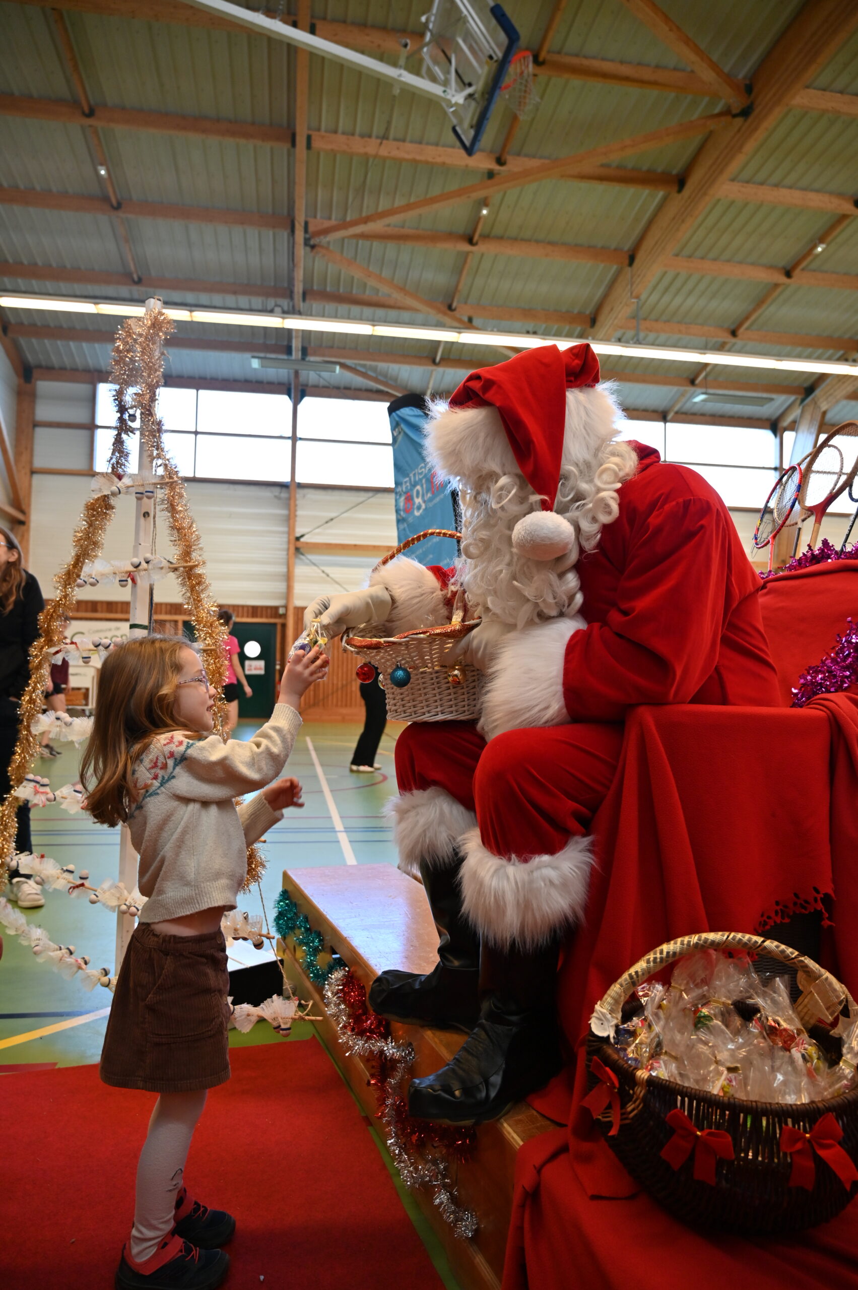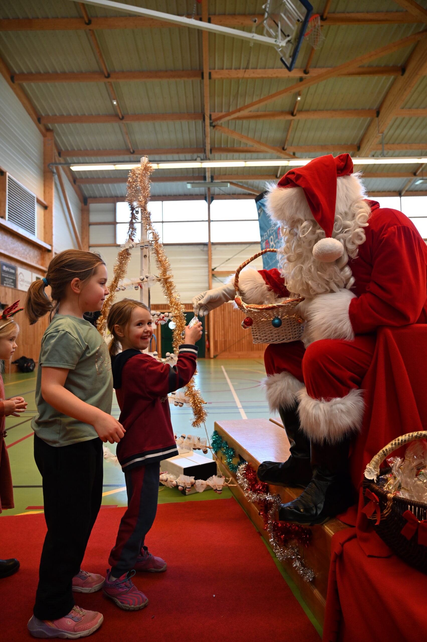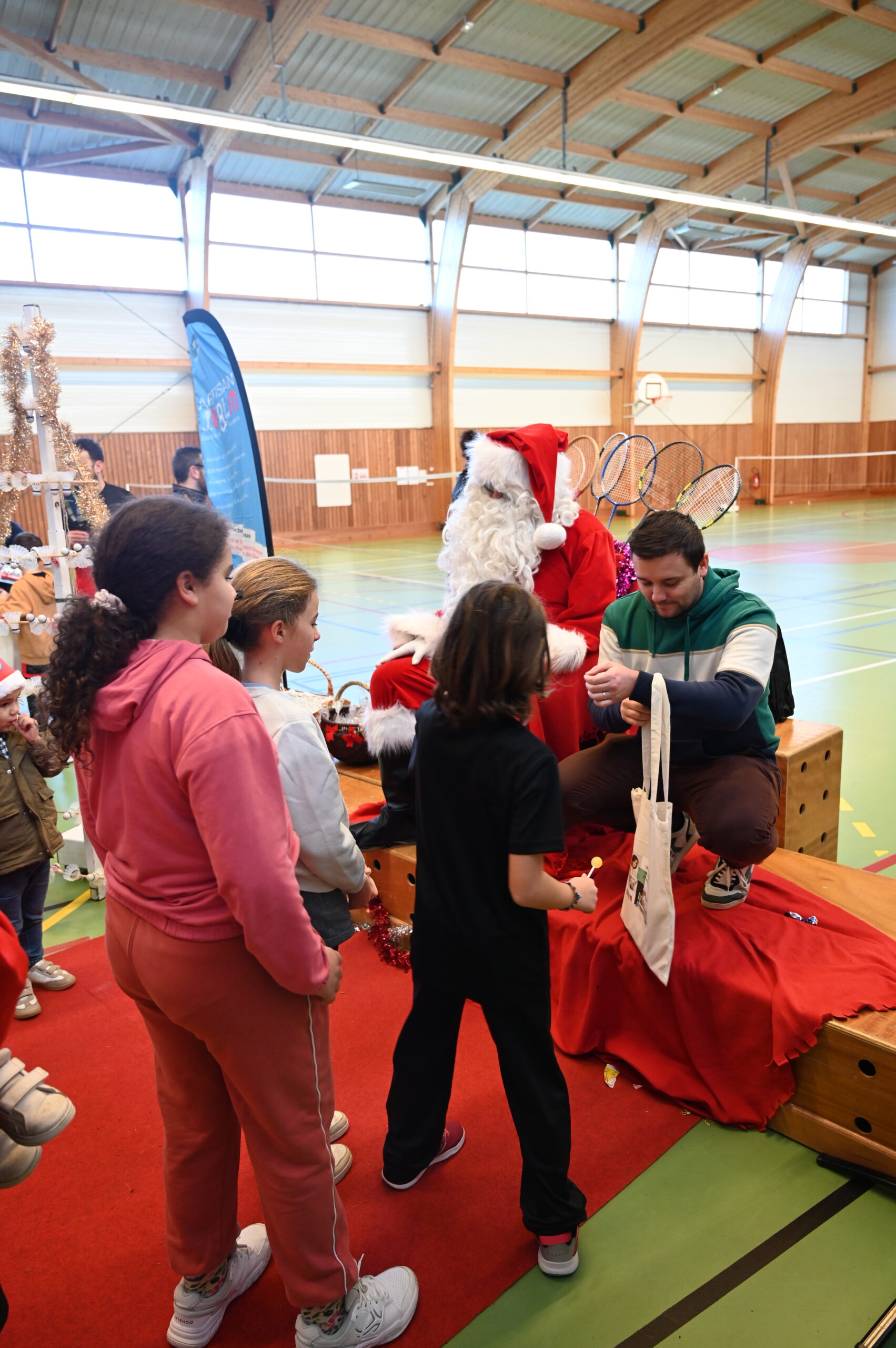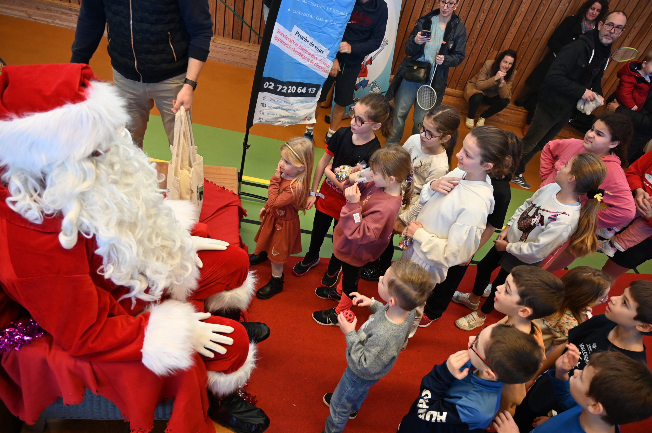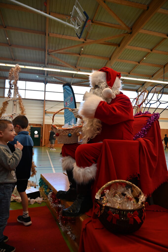 Les enfants ont eu la grande surprise de voir arriver le PĂšre NoĂ«l en personne, venu distribuer friandises et petits cadeaux aux plus jeunes đâš